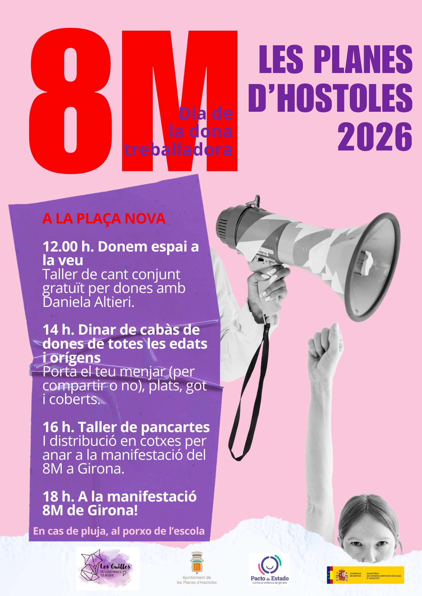 El col·lectiu feminista les Guilles organitza diverses activitats a les Planes d'Hostoles i a la Cellera de Ter per celebrar el Dia de la dona treballadora. El diumenge 8 de març hi haurà un taller de veu i un dinar de cabàs al qual es conviden a totes les dones d'orígenbs i edats diverses a compartir. Després de dinar hi haurà un taller de pancartes i s'organitzaran cotxes compartits per poder assistir a la manifestació de Girona.