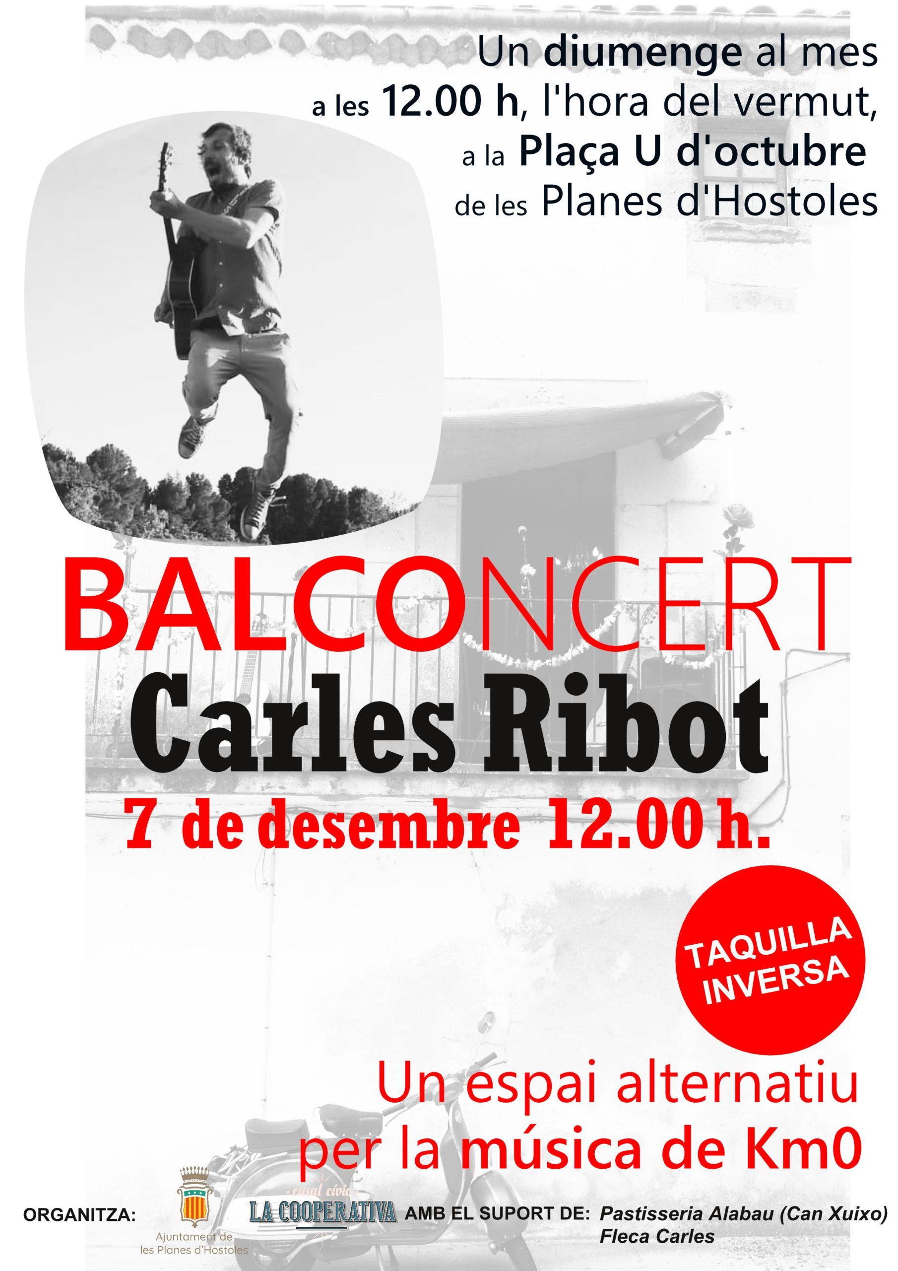 El BALCOncert, un espai alternatiu per la música de quilòmetre zero un dels primers diumenges de mes a l'hora del vermut, les 12 del migdia. En aquesta ocasió vindrà el cantautor Carles Ribot a la plaça 1 d'octubre, que inclourà les Planes d'Hostoles en la seva gira impossible per Catalunya, en la qual visitarà més de 400 municipis.