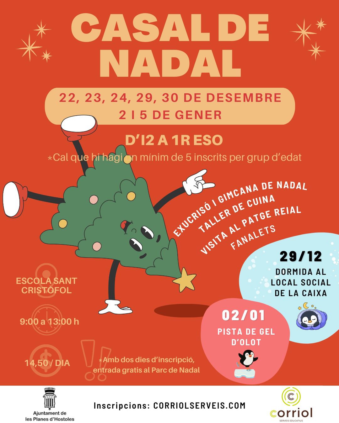 El Casal de Nadal de les Planes ofereix activitats per infants entre 1 i 12 anys de 9 del matí a 13h, del 22 al 30 de desembre i del 2 al 5 de gener, amb activitats lúdiques i divertides a l'escola a càrrec de la companyia d'educació pel lleure Corriol.